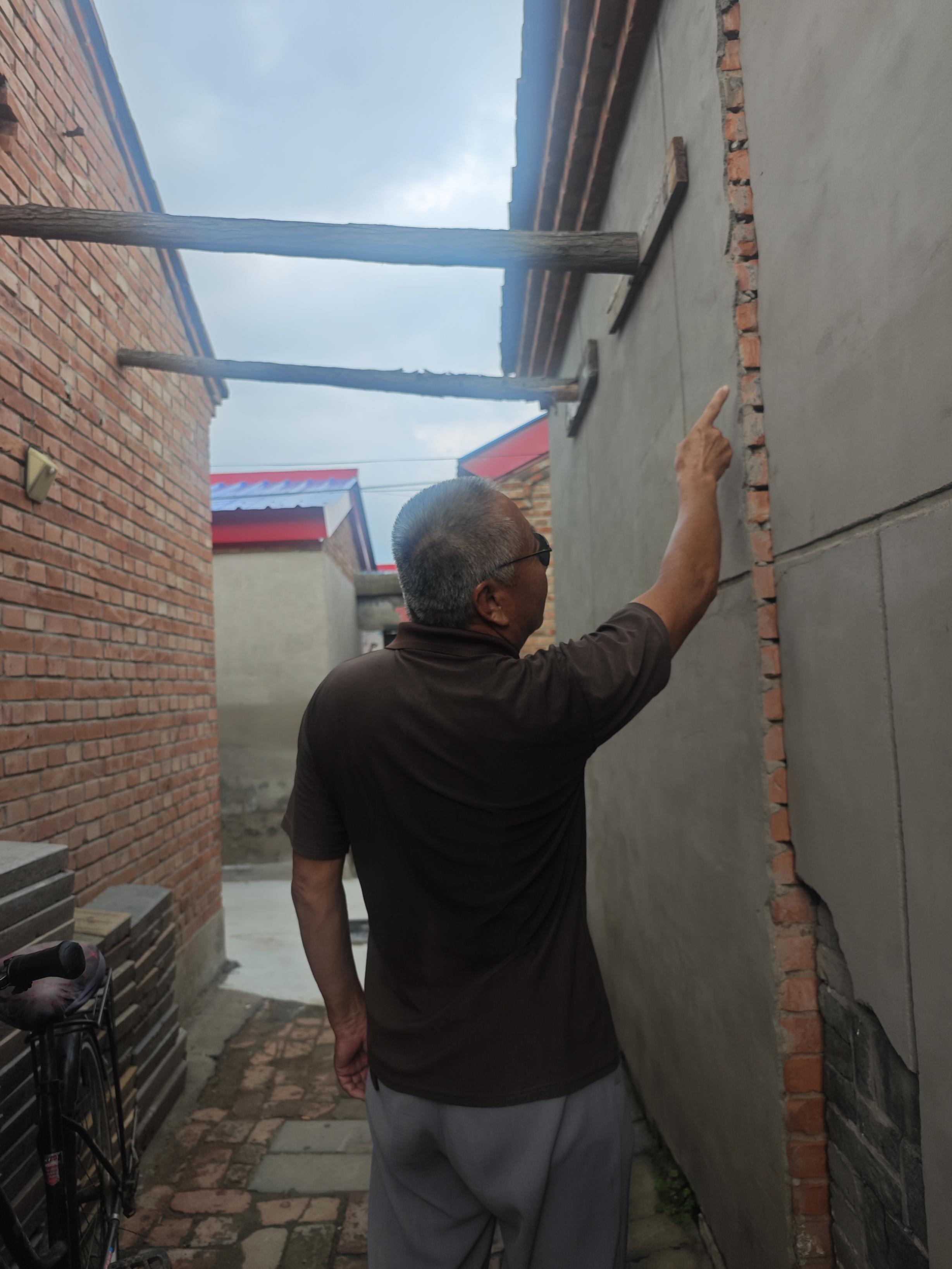 有居民说,平房区的房屋不行翻盖,也无法自行修缮。该墙体前几年运转开裂,尽管多方反馈,但没东说念主配合修缮,导致裂缝越来越深,裸表现里面的砖块,部分墙面还出现了零碎。有居民在闪现的砖块上作念了标志,当前上头有好几说念标志的竖线。“靠外侧的那说念竖线是咱们昨年画的,靠内侧的竖线是本年画的,彰着能看出墙体逐年向外开裂凸出。”记者还详确到,开裂凸出的墙体上原来有一条过失与独揽的墙体皆平,如今这条过失还是低于独揽的墙体,看得出来墙体还出现了下陷的问题。为了幸免开裂的墙体坍塌,居民在上方用木棍、木板竖立了一个固定安装免强督察着。