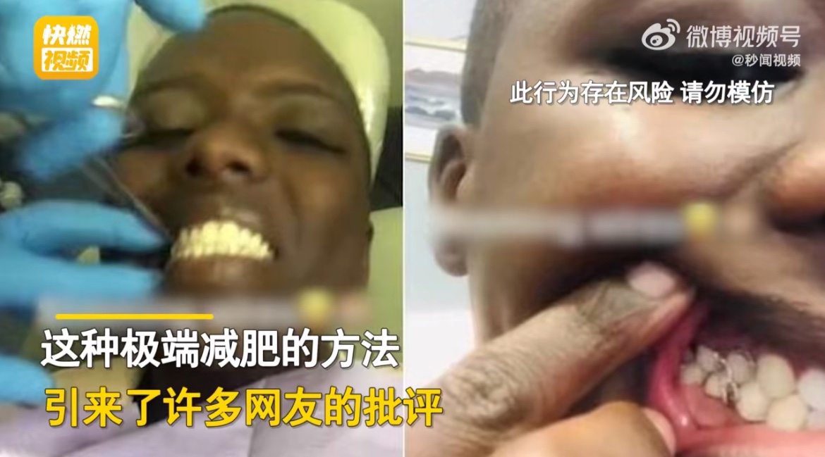 据秒闻视频报说念,近日,南非别称女子为了快速减肥,在牙齿上绑上“瘦身线”,让下巴顽固无法展开下颚,以此减少热量接收,引网友讲理。